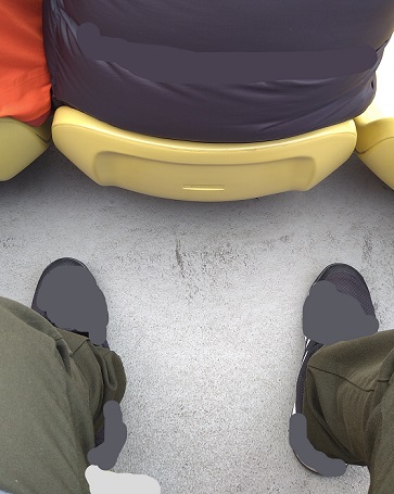 座っている人の前を通る時は、その人の協力が必要。避けてもらわないと通れません