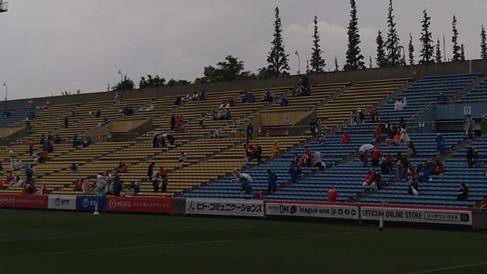 バックスタンドはご覧のように日当たり良好なんですよね!でも試合は観たい推したい